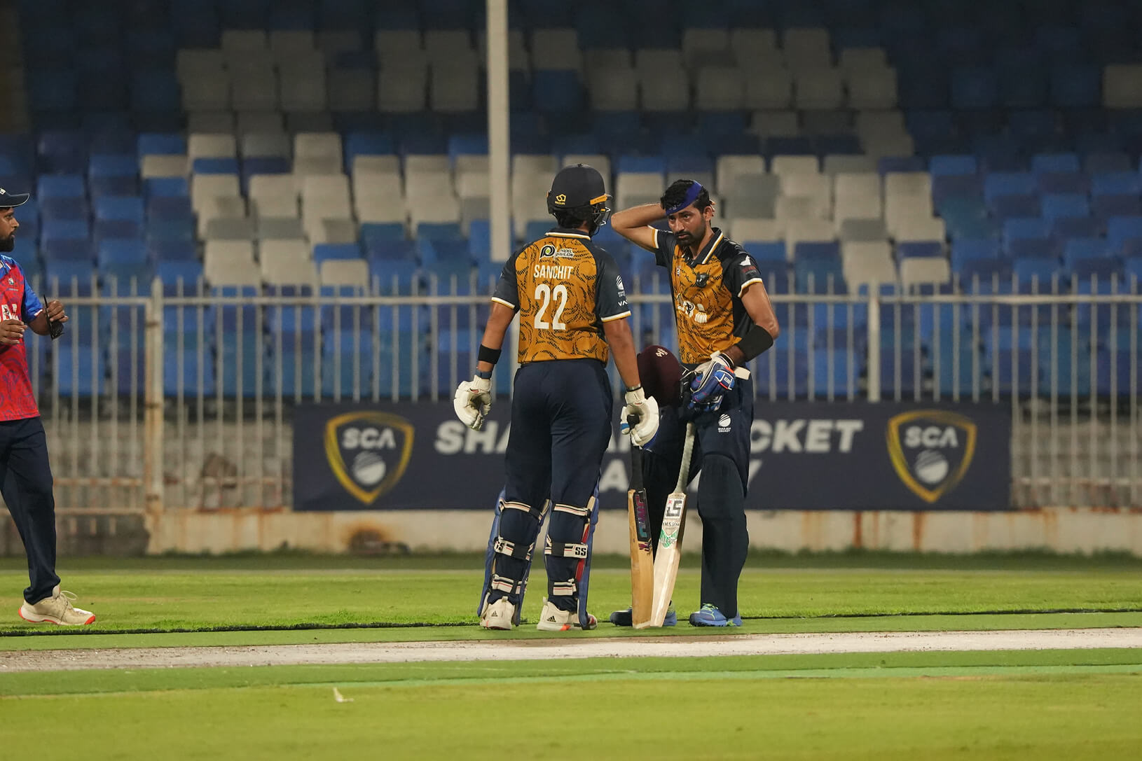 Chasing the target, UAE-GHK Properties started their innings with aggression and precision. Their opening batsmen set a brisk pace, leaving little room for the Titans’ bowlers to settle into rhythm. The standout performer was Sagar Kalyan, who dominated the innings with a remarkable 74 runs off just 11 balls. His explosive batting and aggressive strokeplay were pivotal in steering GHK Properties towards the target quickly and decisively.